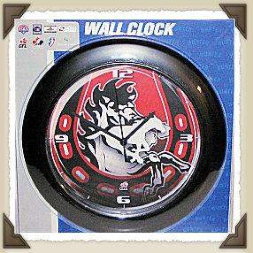 Beautiful Calgary Stampeders 12 inch wall clock. When other CFL fans display their team memorabilia, don't be left out! This clock will look great in your sports bar - a little Stampeders here, a little Flames there. What could be better!