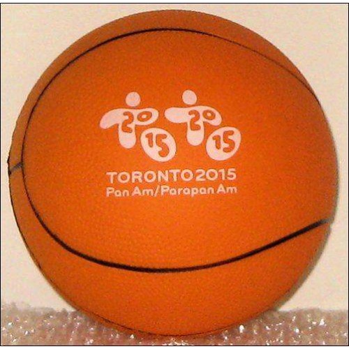 Featured here is a min replica of the Pan American Games basketball ball and it has the official logo of the 2015 Toronto Games